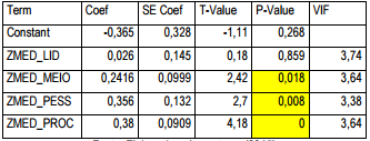 Após isso, foi realizada a adequação da regressão (Tabela 4).