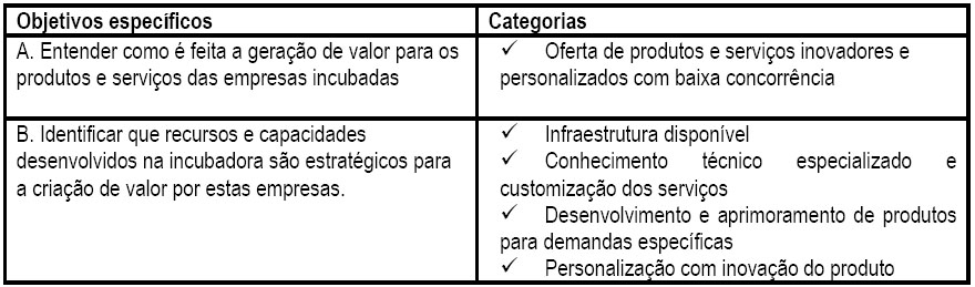 Com este objetivo buscou-se identificar que recursos e capacidades se tornaram estratégicos para a geração de valor aos produtos e aos serviços ofertados pelas empresas incubadas.