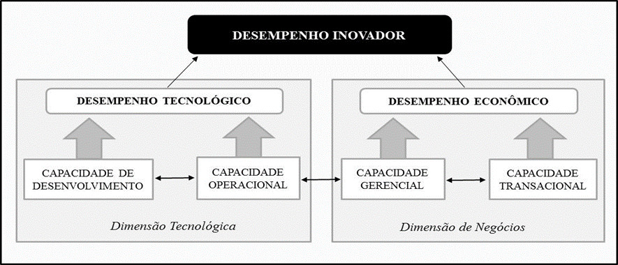 O modelo de capacidades de inovação desenvolvido por Zawislak et al. (2012, 2013, 2014) no contexto das firmas industriais procura contemplar essas quatro capacidades. Para esses autores, a capacidade de inovação engloba a capacidade de desenvolvimento, de operação, de gestão e de transação, sendo que as duas primeiras correspondem à dimensão tecnológica, enquanto as duas últimas dizem respeito ao eixo de negócios.