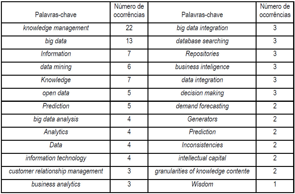 Palavras-chave: Big Data, Gestão do Conhecimento, Revisão Sistemática.