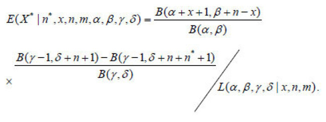 O número esperado de transações futuras para um horizonte de tempo finito a partir de m por um cliente com o relacionamento passado descrito por x,n e m pelo modelo BG/BB é obtido por EX (X * | * n, x, n,m, α, β, γ, δ)