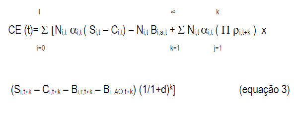 Quando a taxa de crescimento se apresentou constante, a expressão foi adaptada por (1+g), sendo g a taxa de crescimento: