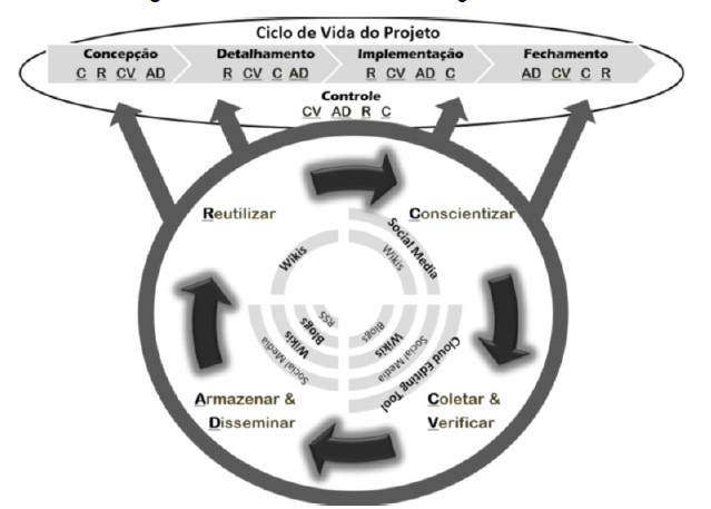 O uso de processos de lições aprendidas associado ao ciclo de vida do projeto e à utilização de ferramentas Web 2.0 é retratado no modelo proposto por Rosa et al. (2016) para a GLA em projetos (Figura 2).