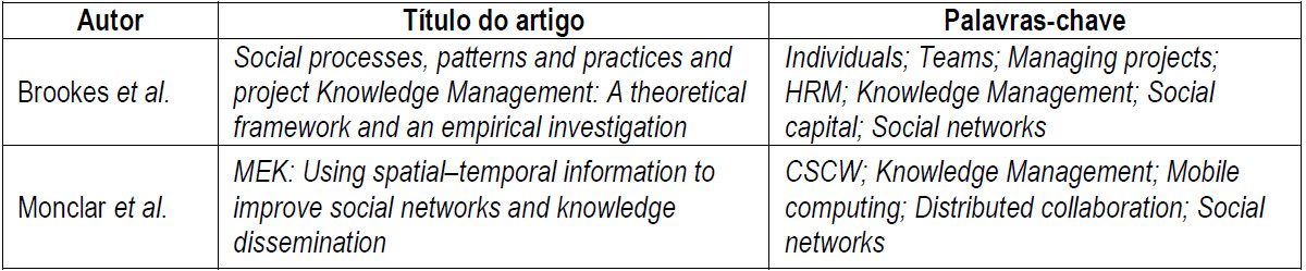 Nesta etapa foram selecionadas palavras-chave para assegurar que o conteúdo dos artigos fosse representativo do tema. Os títulos foram pesquisados até encontrar dois artigos alinhados com o tema da pesquisa. Os artigos selecionados e as respectivas palavras-chave estão no Quadro 1.