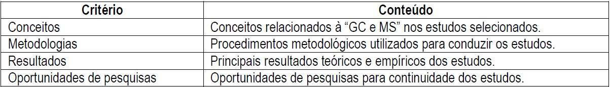 Nos itens a seguir são relatados os resultados da análise sistêmica. Os principais conceitos identificados são discutidos. Os resultados observados no estudo são analisados. O quarto critério tem o objetivo de demonstrar futuras oportunidades de pesquisa.