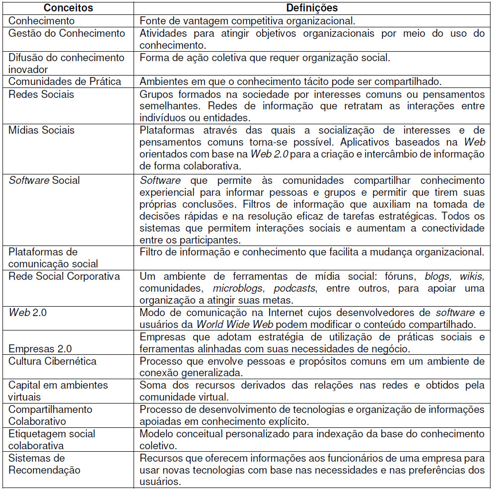 O Quadro 3 sumariza os principais conceitos e respectivas definições retirados do portfólio de artigos.