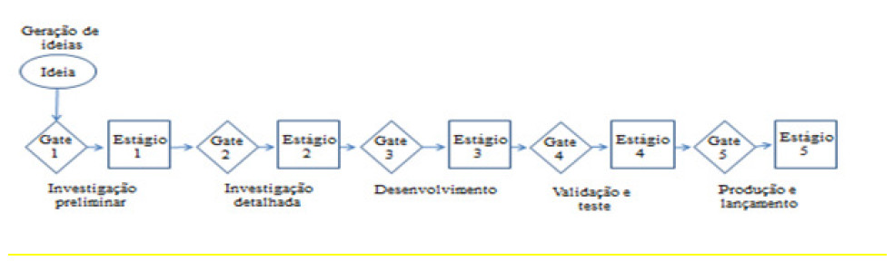 Cooper (1993) elaborou um modelo para execução do processo da inovação em stages-gates apresentado na Figura 1, ampliando o número de estágios comparado ao modelo de Clark e Wheelwright (1993).