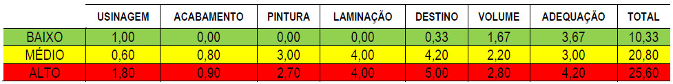 A definição dos pontos críticos está vinculada ao nível de impacto gerado pelos atores em suas faixas de escala. Considerando as médias dos indicadores de cada faixa, construiu-se o quadro de análises e comparações que indicam os pontos críticos da indústria de pranchas de Florianópolis. A Tabela 4 exibe as médias dos indicadores por faixa da escala.