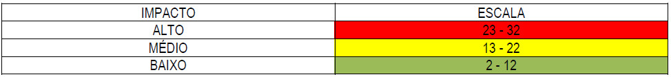A Tabela 3 indica a pontuação de cada ator e a classificação quanto aos seus níveis de impacto.