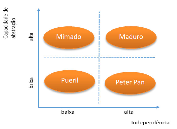 Peter Pan: com alusão ao personagem da literatura, esse perfil de aluno se sente bastante independente, assumindo para si a responsabilidade pela leitura, estudo e pesquisa. Contudo, apresenta dificuldade de abstrair o conteúdo dos livros e vislumbrar a aplicação prática dos conceitos. Sente dificuldade em resolver estudos de caso, por exemplo, ou de aproveitar melhor palestras e seminários de profissionais de mercado (“Conhecemos muitas pessoas, mas muitas vezes as aulas eram desconectadas das palestras e não havia fixação do conteúdo. Algumas aulas faziam sentido dentro do contexto de Marketing, porém teve algumas que eu não consegui ver aplicabilidade ou objetividade no assunto”).