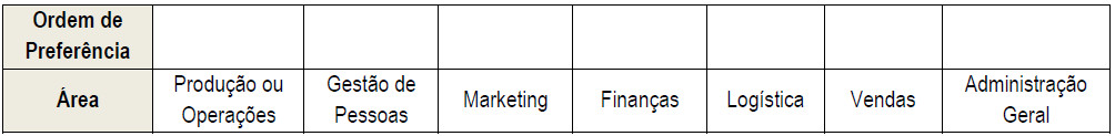 2) Em que área você pretende seguir carreira? Indique sua ordem de preferência, sendo 1 a área preferida e 7 a área menos desejada. Não repita os números, por favor.