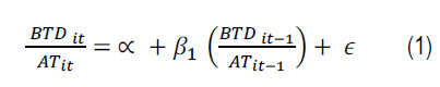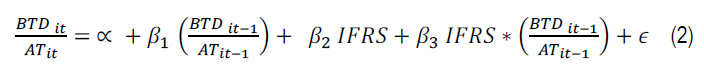O modelo especificado na Equação 2 é uma adaptação daquele ilustrado na Equação 1 e será utilizado para a análise da persistência da BTD antes e depois da adoção das IRFS.