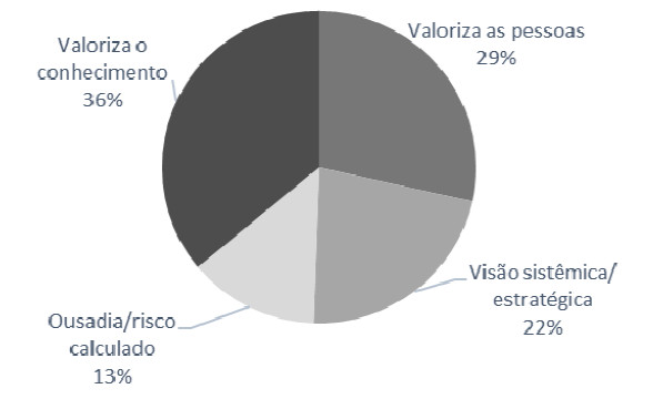Considerando-se a relação direta encontrada entre a capacidade de liderança e o sucesso da inovação na empresa, organizou-se, no Quadro 2, um código de conduta do empreendedor inovador, daquele que consegue um bom desempenho em sua empresa, mesmo com as adversidades externas, e na Figura 4, a importância relativa dos fatores que impactam positivamente sobre o processo de inovação, no que se refere às atitudes/contextos relacionados ao empreendedor da MPE.
