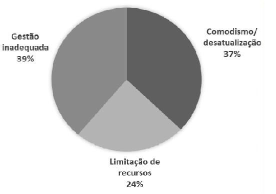 Uma pesquisa realizada pela Federação das Indústrias do Estado de São Paulo (FIESP) revelou, com base em estudo com 200 empresas, que os principais obstáculos à inovação são riscos econômicos (35%), problemas relacionados com financiamento (27%), custos elevados (25%), dificuldades na obtenção de informações (17%) e fatores internos à empresa (12%) (FIESP, 2011 apud ALEXANDRE; SILVA FILHO, 2014).