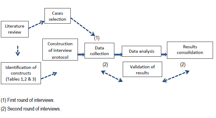 For data collection, multiple sources of evidence have been accessed, in order to allow triangulation of data (YIN, 2001). Thus, in-depth interviews were conducted with the founders of each firm for approximately 3 hours. Additionally, observations and secondary data like document analysis of the internationalization process records were applied. The document analysis sought textual evidence to reveal the fast internationalization as well as the knowledge and use of support programs by the SME companies studied. The full methodological trajectory of this study can be seen in Figure 1.