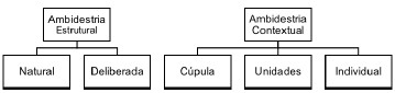 O equilíbrio e a superação do trade-off entre padronização e inovação significam perseguir, simultaneamente, exploration e exploitation, isto é, possuir uma estratégia ambidestra (RAISCH; BIRKINSHAW, 2008; SIMSEK et al., 2009; LAVIE; STETTNER; TUSHMAN, 2010). A literatura sustenta que existem duas formas de se perseguir uma estratégia ambidestra, são elas: estrutural e contextual.