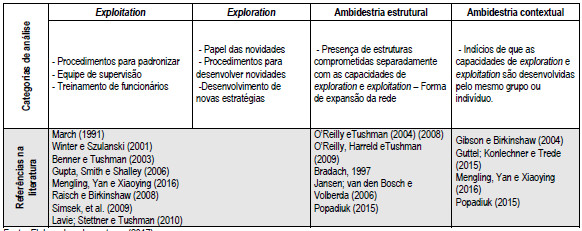 O Quadro 4 mostra as principais categorias de análise das capacidades de exploitation e exploration e resume os achados da pesquisa em cada uma delas.