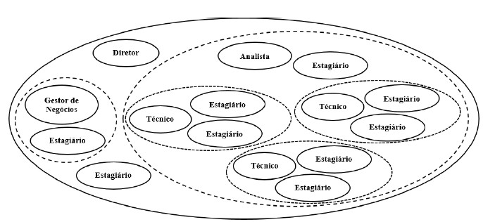 A estrutura funcional da empresa apresenta dez colaboradores organizados no organograma inovador em formato celular, apresentado na Figura 2. Trata-se de uma estrutura mais orgânica.