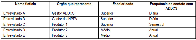 Foram entrevistados 5 atores que fazem parte da rede vinculados à região centro-sul, destacando aqui seus respectivos órgãos e/ou funções, preservando, no entanto, suas identidades. Foram denominados como entrevistados A, B, C, D, E, conforme o que se apresenta no Figura 2.