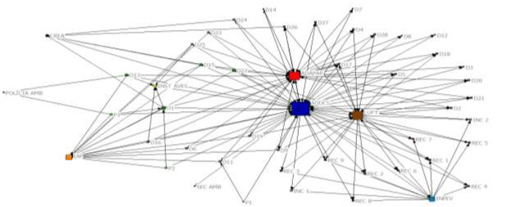 Na Figura 4 estão representados os agentes e suas relações, conforme siglas apresentadas na Figura 5.
