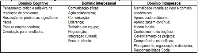 Cognitivo: domínio do núcleo de conteúdos acadêmico de seu campo de atuação; pensamento crítico; e habilidades de solução de problemas complexos;