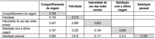 Nota-se, igualmente, que a “Intensidade do uso das redes sociais” possui impacto (Ӷ0,427) no “Compartilhamento das experiências de viagem”, o que significa que quanto mais ativo na rede social, mais propenso o usuário está para compartilhar as suas experiências ou postar fotos e vídeos. A H3, em que o compartilhamento da viagem está relacionado positivamente à intensidade de uso das redes sociais, é então suportada e confirmada.