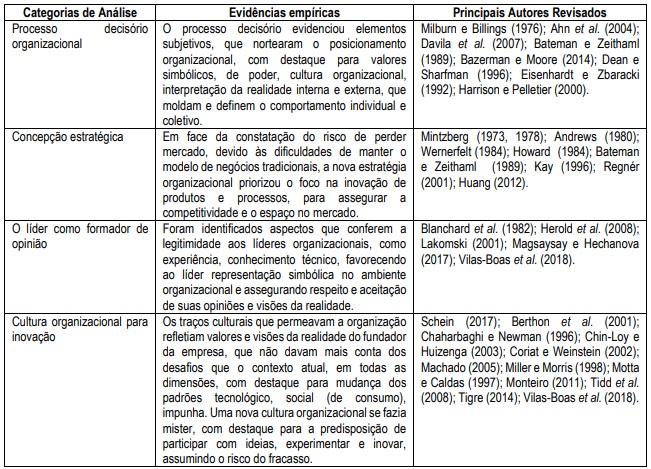 A Figura 2 evidencia os principais achados empíricos, dentro das categorias de análise definidas ex-ante, bem como as vertentes teóricas que suportaram a reflexão sobre o tema em tela.