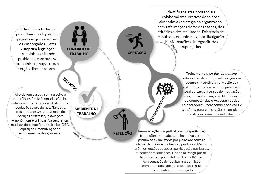De acordo com Collins e Smith (2006), organizações que buscam criar ambientes de trabalho fundamentados em respeito, confiança e comprometimento dos trabalhadores diferem entre organizações, entretanto incluem uma combinação a longo prazo de práticas propícias de GP, como: captação, retenção, desempenho e desenvolvimento, regidos de forma transparente por acordos recíprocos.