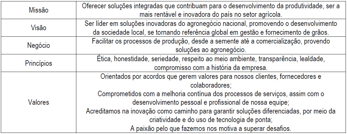 Além disso, o crescimento da Agrícola Tierra Nova significava construir e definir seus valores e a direção para onde ela seguiria para os anos por vir, e dar também os parâmetros para a equipe que começava a crescer e também informar ao mercado o posicionamento e a postura da empresa, com sua missão, visão, negócio, princípios e valores que estava pautada, conforme indica a Figura 1.