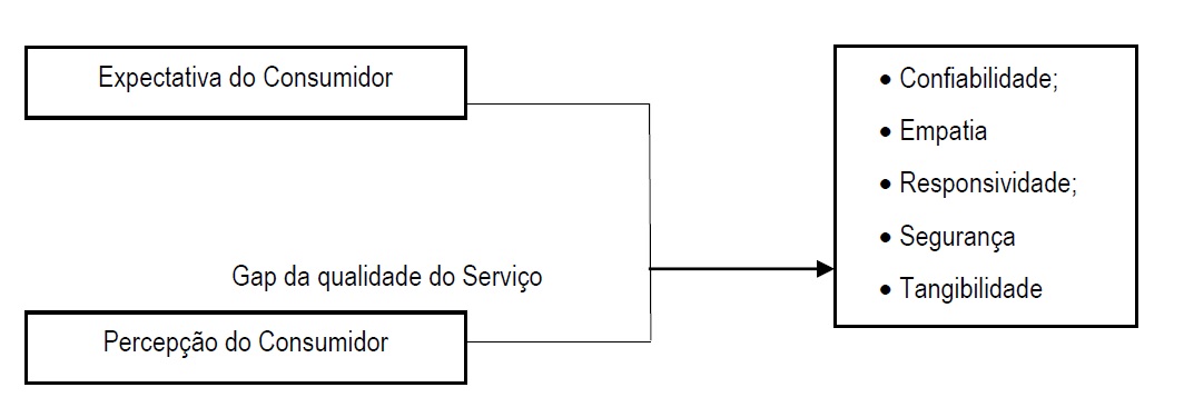 A partir da Teoria dos Gaps e da definição das dimensões da qualidade do serviço de Parasuraman et al. (1985, 1988, 1993), foi desenvolvida uma escala (Bambrati & Coltre, 2017; Kalaja; Myshketa & Scalera, 2016) com o objetivo de mensurar a percepção do consumidor a respeito da qualidade do processo. De acordo com Santos e Santos (2017), o principal fundamento dessa escala são as cinco dimensões da qualidade de Parasuraman et al. (1985, 1988). Tal ferramenta de mensuração é conhecida como escala SERVQUAL.