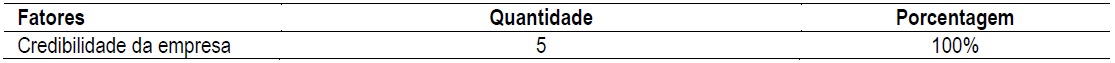 Já no que tange a confiabilidade positiva, viu-se que a categoria é formada por fatores que, somados, ocorreram 49 vezes, conforme vê-se a partir da Tabela 3.