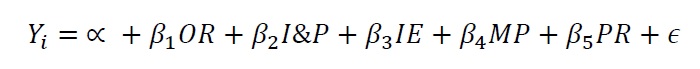 Por fim, a análise de regressão múltipla foi utilizada para verificar a influência dos fatores de características empreendedoras (variáveis independentes) sobre o desempenho (variável dependente) das propriedades vitivinícolas da Campanha Gaúcha. Foram estimados três modelos, um para cada categoria de desempenho, a partir da equação a seguir.