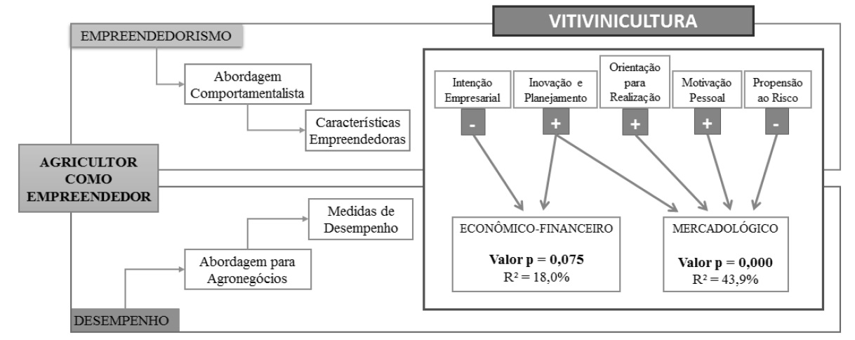 4.3 RELAÇÃO ENTRE CARACTERÍSTICAS EMPREENDEDORAS E DESEMPENHO DOS VITIVINICULTORES