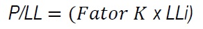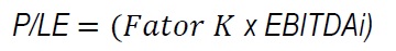 [Eq. 5]Onde: P/LL: valor baseado no Lucro Líquido; P/LL: valor baseado no EBITDA; CmA: cotação média das ações; LmA: Lucro médio por ação; LLi: Lucro Líquido da empresa; EBITDAi: EBITDA da empresa.