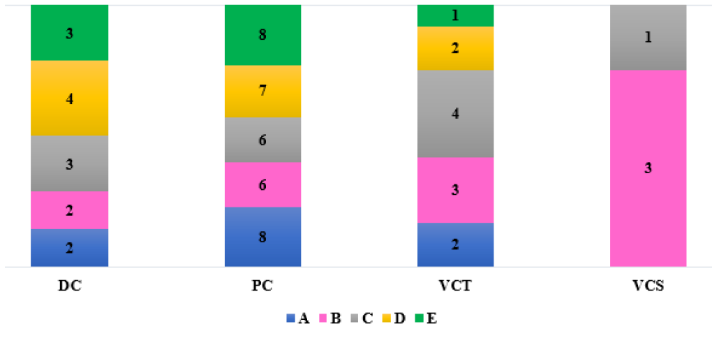 A maior parte dos recursos que ocasionou a implicação de DC se refere a questões intangíveis, como a Qualidade no Atendimento, Treinamento da Equipe, Parcerias, Gerenciamento de Estoque e Rapidez no Delivery. Em alguns casos, há ciência do problema. Tais DCs se revelam como oportunidades de melhoria para tais hamburguerias, especialmente àquelas que não possuem VCTs ou VCSs. Sobre a Qualidade no Atendimento, a empresa A informou que acha “bem precário” o atendimento fornecido, enquanto a empresa C salienta que seu atendimento é baseado na tentativa e erro. Tais visões revelam uma fragilidade dessas hamburguerias, haja vista uma das conclusões de Hoffmann et al. (2016), sobre a importância do bom atendimento ao cliente no setor de food service em Food Trucks em Brasília. A ausência de um gerenciamento estruturado de estoque também revela fragilidades, pois há de se considerar que a eventual ausência de alguma matéria-prima pode impactar o processo de produção da hamburgueria, incidir em redução das vendas e em clientes insatisfeitos.