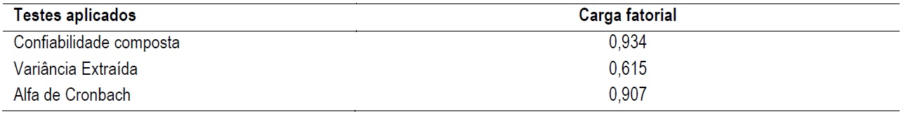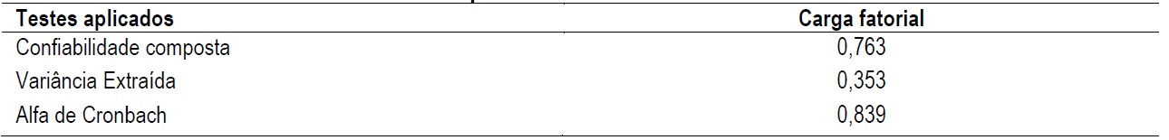 Por não apresentarem significância, foram excluídas da análise as demais questões. Considerou-se os resultados para a variável criatividade individual percebida como adequados quanto à confiabilidade composta e o Alfa de Cronbach. Por sua vez, a variância extraída, embora abaixo do valor recomendado de 0,50, o critério de confiabilidade foi considerado satisfatório por se tratar de um construto subjetivo, cujo limite, segundo a literatura, é adequado se superior a 0,32 (Tabachnick et al., 2001), conforme exibido na Tabela 3.