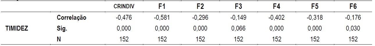 Constatou-se que o construto é significante a . < 0,01, assegurando a confiabilidade geral da variável latente TIMIDEZ, definida pela média das variáveis observáveis.