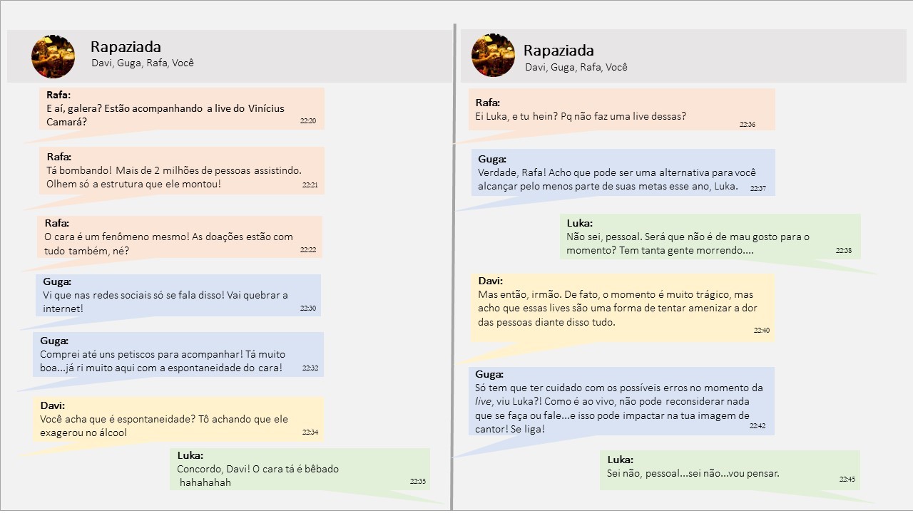4. Se você estivesse na posição de Luka, decidiria por realizar ou não a live? Justifique.