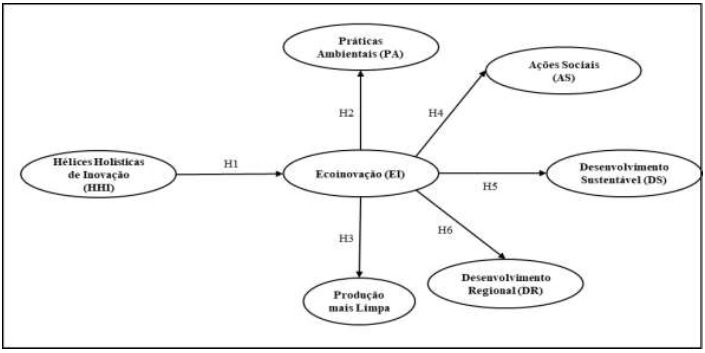 H1: As hélices holísticas de inovação (HHI) estão positivamente relacionadas com a ecoinovação (EI).