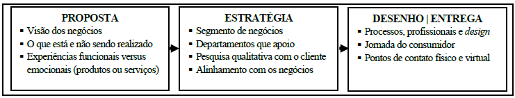 Há de se reconhecer que a experiência do cliente engloba uma perspectiva holística quanto ao negócio, marca, produto e serviço da organização. Experiência não é, meramente, atender ao cliente. O atendimento ao cliente é um elemento de toda a experiência. Ou seja, a experiência é maior do que o atendimento ao cliente, uma vez que inclui todos os pontos de contato que um cliente tem com a organização (Grace & O'Cass, 2004). Tendo em mente a demanda crescente por inovação, qualidade de serviços, foco no cliente e, também, a ausência de frameworks que possibilitem o desenho e gestão de projetos de experiências do cliente mais eficientes e eficazes, considerou-se o seguinte problema: “Quais são os estágios da construção e entrega de valor aos clientes, a fim de apoiar os profissionais de CX na elaboração, planejamento e implementação de projetos de experiência do cliente?”. Para tanto, o seguinte objetivo foi proposto: Introduzir e descrever um frameworkque descreva os estágios da elaboração, planejamento e implementação de projetos visando a entrega valor e de experiências aos clientes e, também, apoiar profissionais de CX.