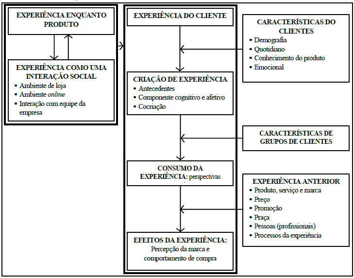 Estratégias experimentais de marketing têm sido elaboradas por organizações com o objetivo de atrair o cliente para interagir e se envolver com as ofertas e, mais propriamente, fazer com que eles tenham atitudes proativas e favoráveis, seja por meio de interações diretas com a organização, bem como indiretas, mediante intermediários. Essas interações podem ser organizadas nas etapas de pré-consumo, consumo e pós-consumo. Na verdade, a experiência do cliente engloba um construto psicológico que busca uma atitude holística e subjetiva, resultante do contato do cliente com a organização através dos diferentes canais, buscando obter o engajamento do cliente (Gentile, Spiller & Noci, 2007; Pine & Gilmore, 1999). Essas interações com os clientes buscam proporcionar seis categorias de respostas que estruturam a experiência do cliente, estabelecidas em sensorial e física, emocional e afetiva, cognitiva, pragmática, estilo de vida e relacional (Schmitt, 1999; 2003). Consequentemente, as interações e os envolvimentos acumulam conhecimento, valor e qualidade percebida do cliente em cada fase do processo de experiência, resultando assim na possibilidade de os clientes estabelecerem uma conexão emocional com as ofertas (Meyer & Schwager, 2007).