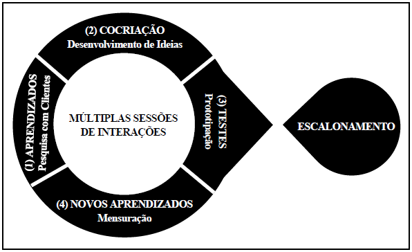 O segundo processo compreende o recrutamento de clientes para executar a pesquisa. Entre 15 e 50 clientes, costumam ser considerados no escopo da pesquisa para gerar insights profundos. Perfil e potencialidades dos clientes precisam ser cuidadosamente observados para selecioná-los. Ainda, a pesquisa deve levar entre 2 e 3 horas de interações. O terceiro processo engloba a coleta dos dados, com uma pesquisa centrada nas observações, “falas” e registros dos pontos de vistas dos clientes. O quarto processo procura reunir, codificar, debater e compreender as principais necessidades, ideias, oportunidades e restrições apontadas pelos clientes nas interações. O co-design e, ainda, a cocriação, entre equipes, clientes e, se possível, parceiros, são mecanismos eficientes e eficazes para construir propostas de experiências alinhadas e sincronizadas com o que os clientes, realmente, desejam receber das organizações (Prahalad & Ramaswamy, 2004).