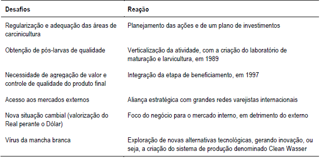 Os momentos de grande turbulência, provocados pela taxa de câmbio desfavorável começando em 2006 e o enfrentamento, em 2011, de um vírus mortal que atacou e destruiu a sua matéria-prima, os camarões, provocaram reações por parte da empresa, que demonstrou sua capacidade de ajustar seus recursos, o que culminou na manutenção de sua competitividade no mercado.