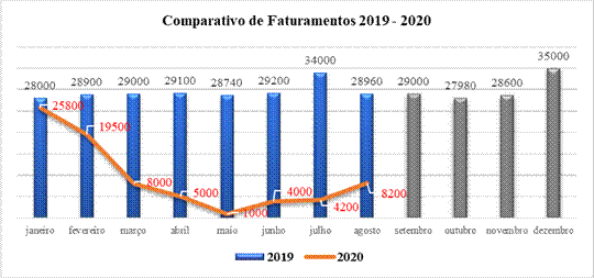 O setor de Alimentação Fora do Lar (AFL), especialmente de bares e restaurantes, foi afetado com tais medidas. Apesar de terem finalizado a compra do ponto comercial em dezembro de 2019, dona Zizi e Pedro se viram diante de um contexto totalmente anormal. O primeiro semestre de 2020 foi o pior cenário vivenciado pela gestão do Gastrô Mineiro, com redução de quase 80% de seu faturamento no pico da primeira onda da pandemia, vide Figura 2.