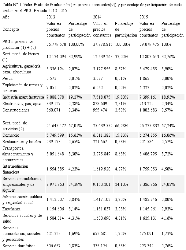 Respecto a los datos estadísticos del Instituto Provincial de Estadísticas y Censos, se han utilizado los informes que exhiben resultados provisorios sobre la estructura económica y la evolución anual de la economía provincial. En los mismos se presenta el flujo total de bienes y servicios generados por una economía mediante la utilización de factores productivos de propietarios residentes en la provincia, es decir, el Producto Bruto Geográfico Provincial expresado en precios constantes. En este punto resulta pertinente señalar, que se han incluido los datos correspondientes al periodo 2013-2015, los cuales dan cuenta del mismo periodo temporal al cual pertenecen los discursos políticos con los que se comparan. Asimismo, se destaca que no fue posible incluir los valores del PGB del año 2016, ya que el IPEC modifico el año de control a partir del cual se establecían los precios constantes[i].