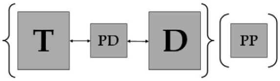 La siguiente figura representa la estructura de un CD, en donde se identifican los elementos mínimos consecutivos como el término (T), el patrón definitorio (PD), la definición (D) y un elemento modificador optativo (PP).