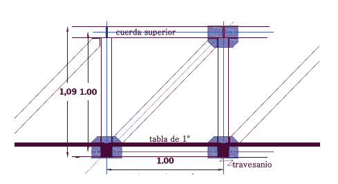 Se necesita un total de 47 polines para elaborar todas las piezas de madera (10 para las diagonales, 11 para los travesaños y 26 para las cuerdas y los montantes), además de 16 tablas de 1”.