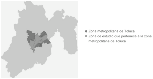 El presente trabajo se circunscribe a la zona central conurbada de Toluca, la cual incluye los municipios de Lerma, Metepec, San Mateo Atenco, Toluca y Zinacantepec. Algunos estudios (Negrete y Salazar, 1995; citado por Arteaga, 2005: 75) consideran al conjunto de estos municipios como una versión reducida de la zona metropolitana del Valle de México.