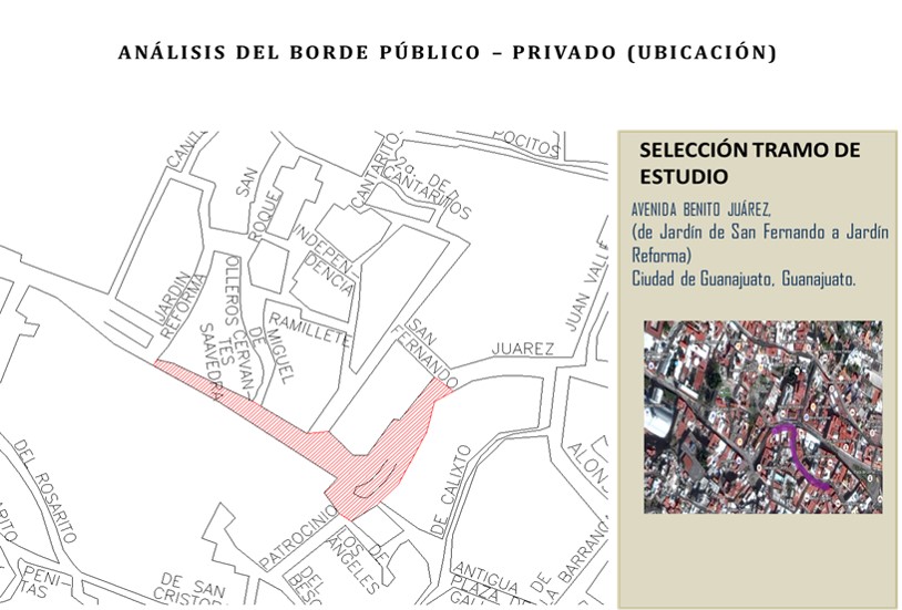 Imagen 1. Selección Tramo de estudio: Avenida Benito Juárez, ciudad de Guanajuato.