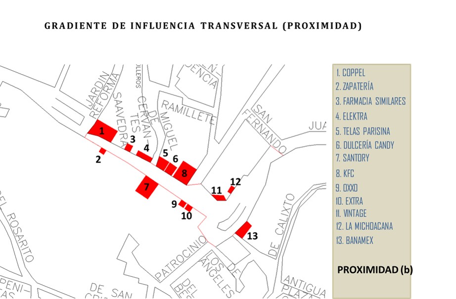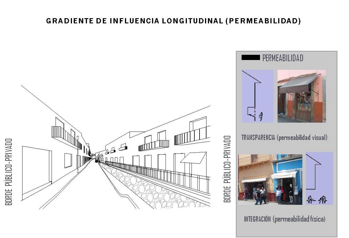 b) Permeabilidad: esta variable mide en términos visuales la interrelación entre el espacio público y el espacio privado, es decir, la mayor o menor facilidad que tiene el peatón, durante su recorrido, para percibir el espacio privado desde el público.